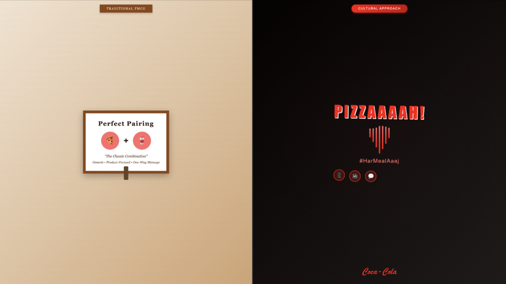 This approach reflects genuine cultural intelligence. Rather than imposing Western food-pairing concepts, Coke embraces distinctly Indian comfort foods. A similar challenge of cultural authenticity in FMCG branding has been explored in recent KitKat campaigns, where musical elements attempted to bridge generational gaps. The campaign acknowledges that Indian consumers don’t need education about Coke-with-pizza; they need permission to verbalise the satisfaction they already experience[3][4].